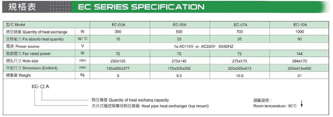 采用密閉型設計,內外空氣不產生對流;可阻隔濕氣、油氣、粉塵進入電控箱內;節(jié)約能源且效率高的傳熱導體,約為銅的1600倍,安全性高;簡化輕巧之設計不佔空間,安裝容易,保養(yǎng)簡單。