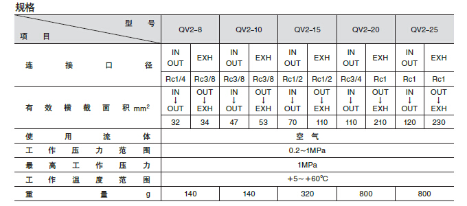 適用于提高驅(qū)動(dòng)器的速度,響應(yīng)性超群;排氣流量大;而才久性優(yōu)異;可在配管后的狀態(tài)下進(jìn)行維護(hù),連接口徑:Rc1/4、Rc3/8、Rc1/2、Rc3/4、Rc1。