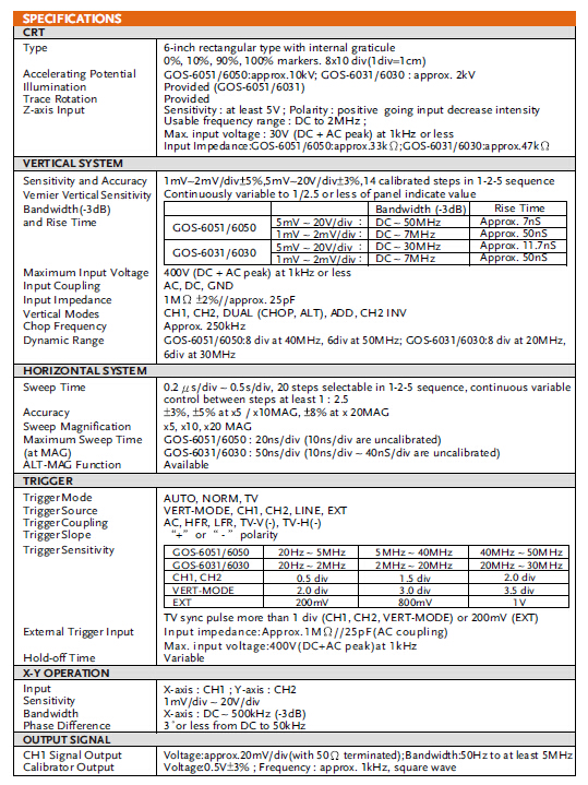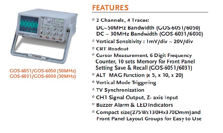 GOS-6031系列 30MHz模擬示波器