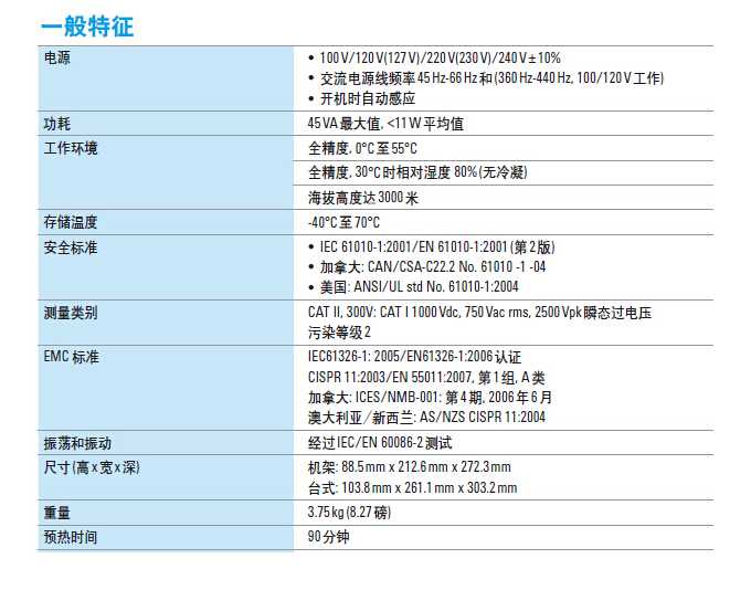 高達190個讀數(shù)/秒的快速讀取速度,0.015% DCV 精度,多種連通性選件-USB 2.0、串行接口(RS-232)和GPIB;11種測量功能:直流電壓和電流、真有效值交流電壓和 電流、2線和4線電阻、頻率、導通、二極管測試、 電容和溫度;超亮度OLED顯示屏,配有雙顯示屏;高達50000點的存儲器深度提供強大的數(shù)據(jù)記錄能力;內置直方圖功能;與Fluke 45和Fluke 8808A保持代碼兼容性。