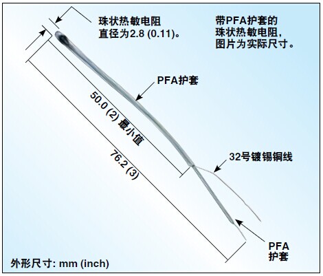 覆有環(huán)氧樹脂涂層的珠狀熱敏電阻;
