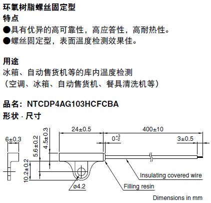 用于冰箱、自動售貨機等的庫內(nèi)溫度檢測;