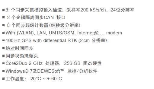 8個模擬輸入通道,2個CAN接口,同步視頻攝像頭,絕對時間同步。