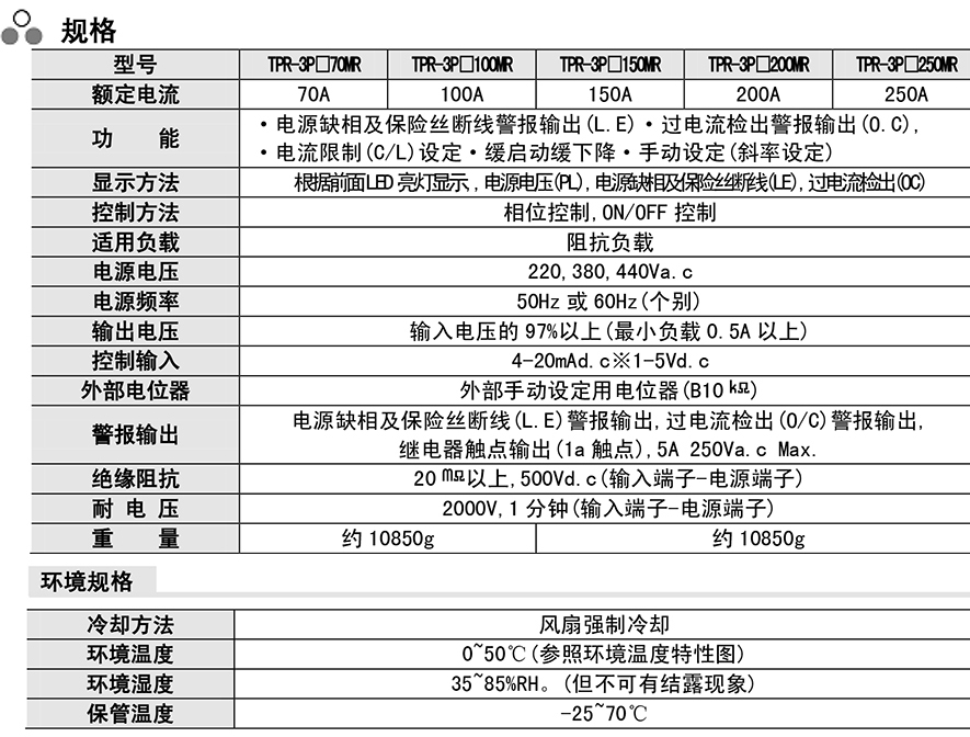 ·電源缺相及保險斷絲(L.E)警報輸出·過電流檢出(O/C)警報輸出·緩啟動&緩降·電流限制(C/L)設定·內(nèi)置速斷保險絲