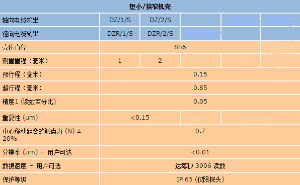2. 緊湊型DZ系列彈簧推動(dòng)測(cè)量感測(cè)頭