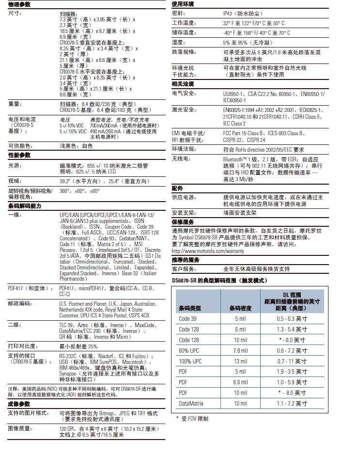 DS6878-SR無線條碼閱讀器提供全面的數(shù)據(jù)采集功能,幫助簡化多種行業(yè)的日常應(yīng)用流程,防止出錯.只需這一臺設(shè)備,您即可采集各種標(biāo)簽以及移動電話顯示屏上的所有常見條碼(一維、二維和PDF417),最新的藍(lán)牙技術(shù)使產(chǎn)品能夠?qū)崿F(xiàn)無繩配置以及更多便利