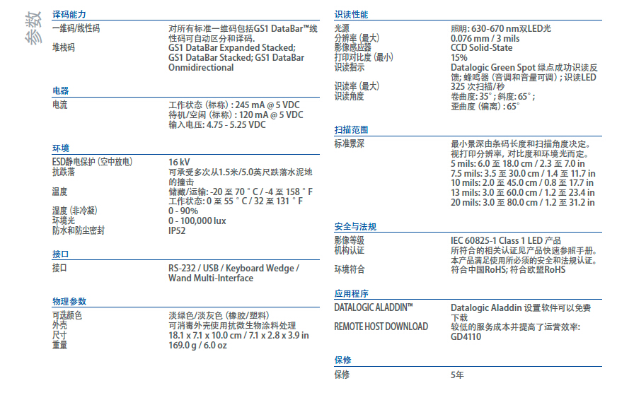 GRYPHON 4100-HC SERIES手持式線性圖像條碼掃描器系列(適用于醫(yī)療行業(yè))