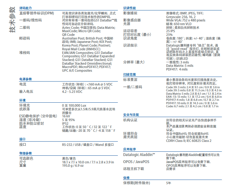 高效識讀各類DPM碼;柔和白光照明技術(shù),保護(hù)操作人員雙眼;全方位高效讀取各類一維碼、二維碼、郵政碼、堆棧碼及復(fù)合條碼