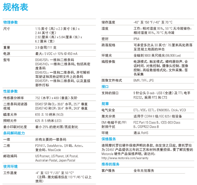 四種模式可滿足任何數(shù)據(jù)采集需求,SR(標(biāo)準(zhǔn)范圍)適用中等至大型條碼的一維/二維密集型應(yīng)用,HD(高密度)適用于制造業(yè)常見(jiàn)的小而密條碼,DL(駕駛證解析)非常適合需要采集駕駛證ID信息的一維/二維應(yīng)用.DP(直接部件打標(biāo))適用于快速采集每種類型的直接部件打標(biāo),包括點(diǎn)式打標(biāo)、激光刻蝕、化學(xué)刻蝕、噴墨、印模、澆鑄和熱噴鍍,采集幾乎任何表面上的標(biāo)記,包括金屬、橡膠、塑料、玻璃上的標(biāo)記.