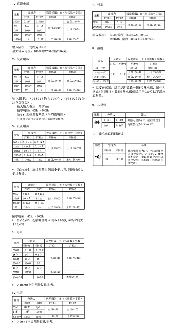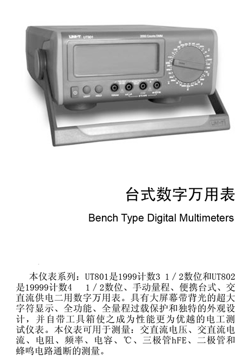 2. UT801/802臺(tái)式數(shù)字萬(wàn)用表