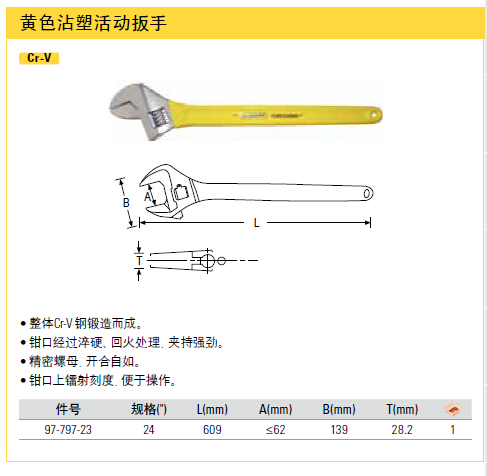 整體Cr-V鋼鍛造而成,鉗口經(jīng)過(guò)淬硬,回火處理,夾持強(qiáng)勁.精密螺母,開(kāi)合自如.鉗口上鐳射刻度,便于操作.