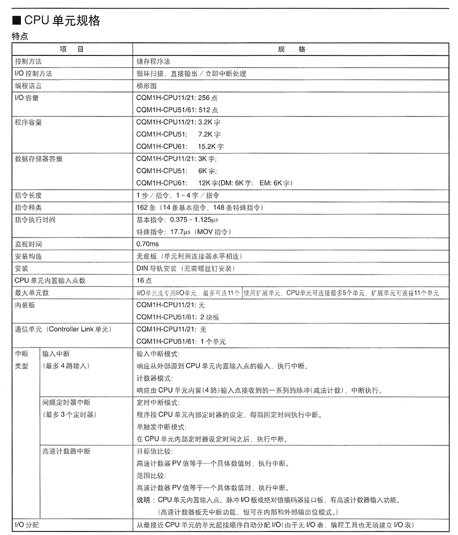 CQM1H是一種功能完善的緊湊型PLC,具有通過(guò)各種高級(jí)內(nèi)裝板進(jìn)行升級(jí)的能力,大程序容量和存儲(chǔ)器單元.