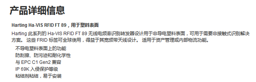 2. 用于塑料表面128位應(yīng)答器 Harting Ha-VIS RFID FT 89