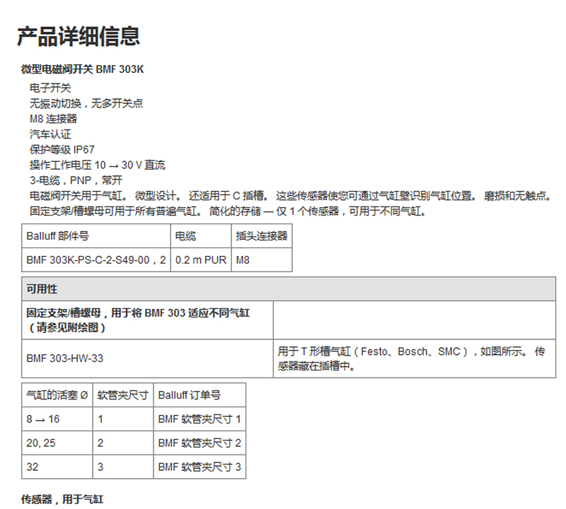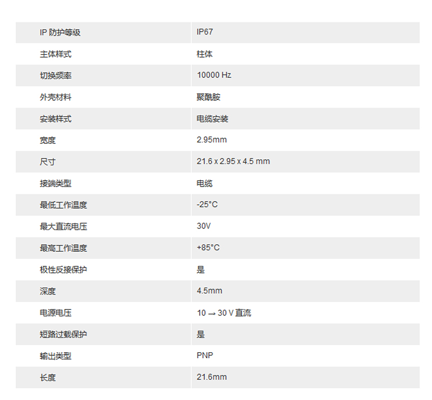 2. PNP輸出3000Hz磁感應(yīng)器,10~30V直流電源 氣缸位置傳感器