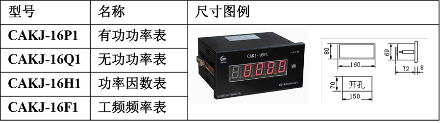 2. 開孔尺寸150x70 16系列工頻頻率表
