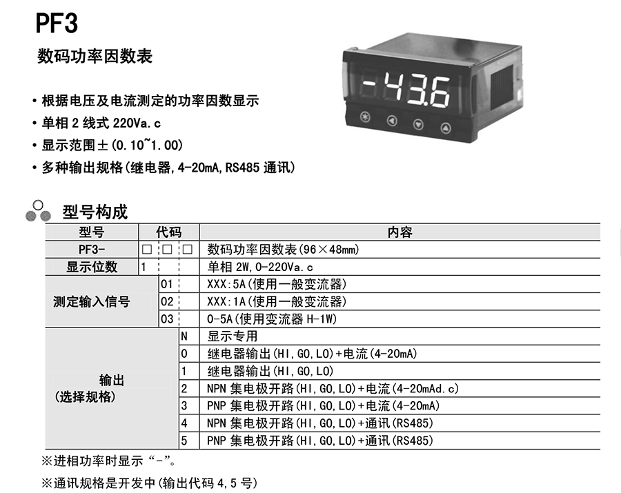 2. 單相2限式220VAC PF3數(shù)碼功率因數(shù)表