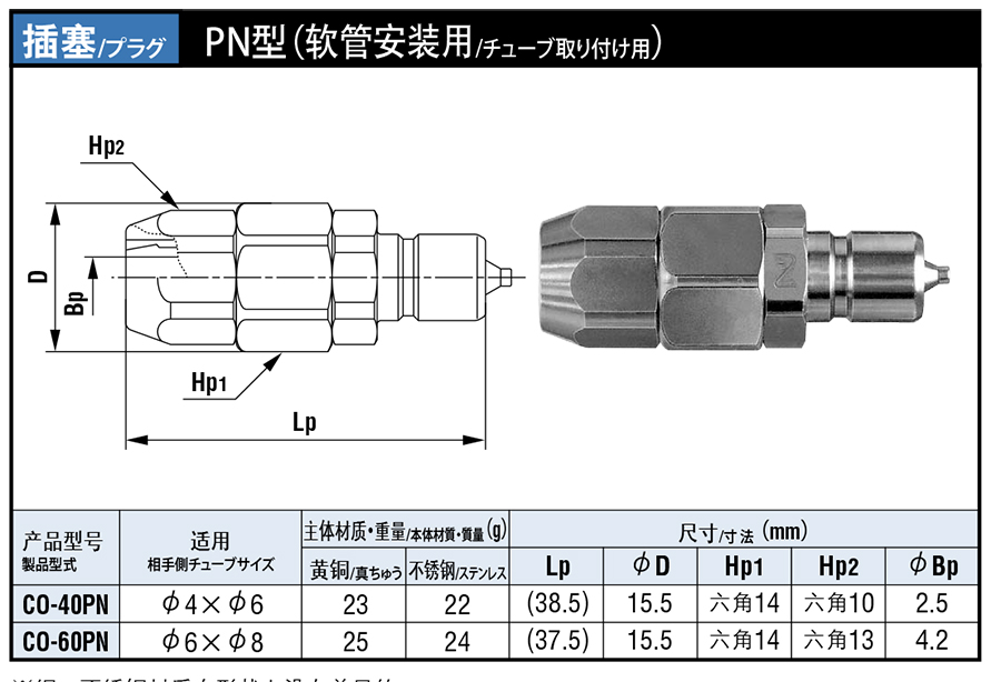 2. PN 軟管安裝用小巧型快速接頭