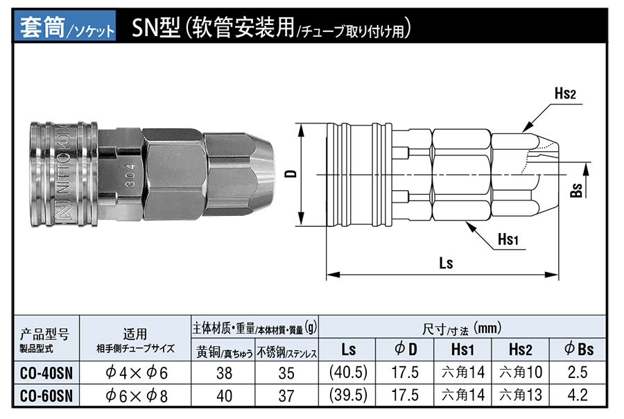 2. SN軟管安裝用小巧型快速接頭