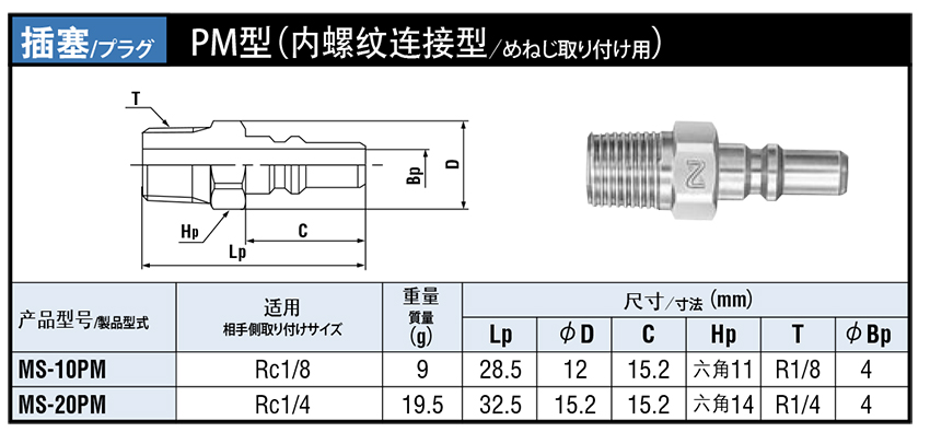 2. PM 內(nèi)螺紋連接型小巧型快速接頭
