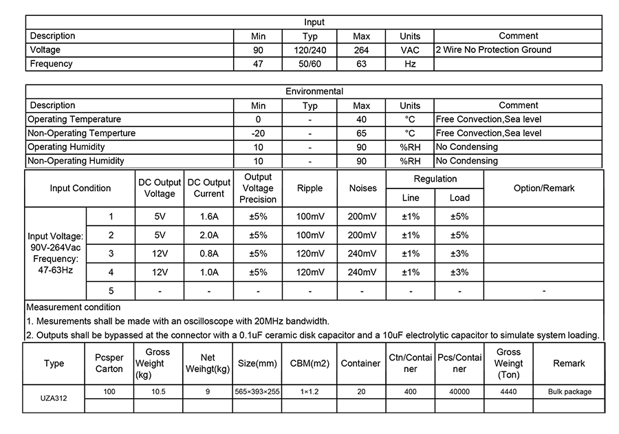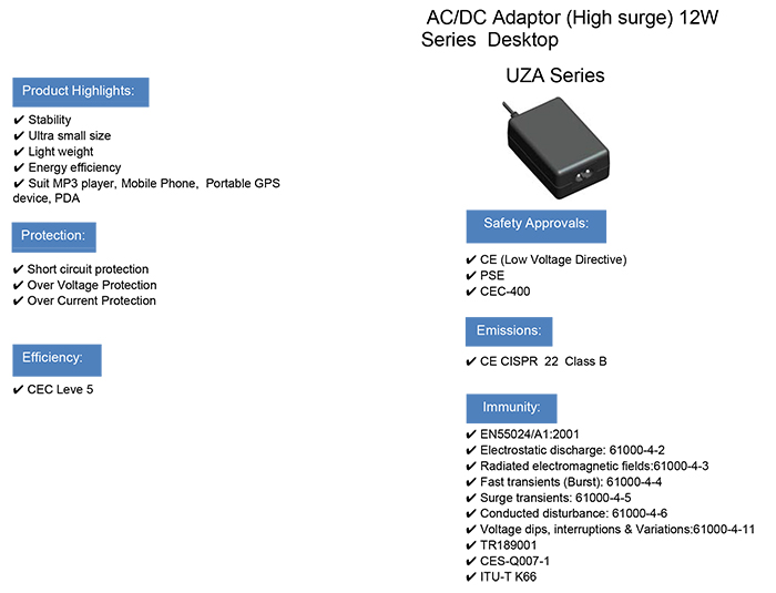 2. UZA 12W AC適配器