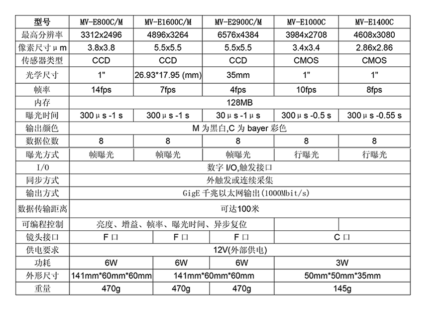 2. MV-E系列高分辨千兆網(wǎng)工業(yè)相機