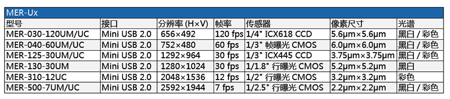 2. MER-U系列USB接口數(shù)字?jǐn)z像機(jī)