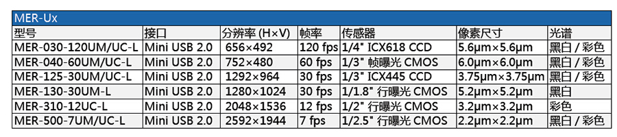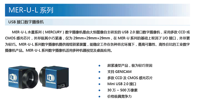 2. MER-U-L系列USB2.0接口數(shù)字?jǐn)z像機(jī)
