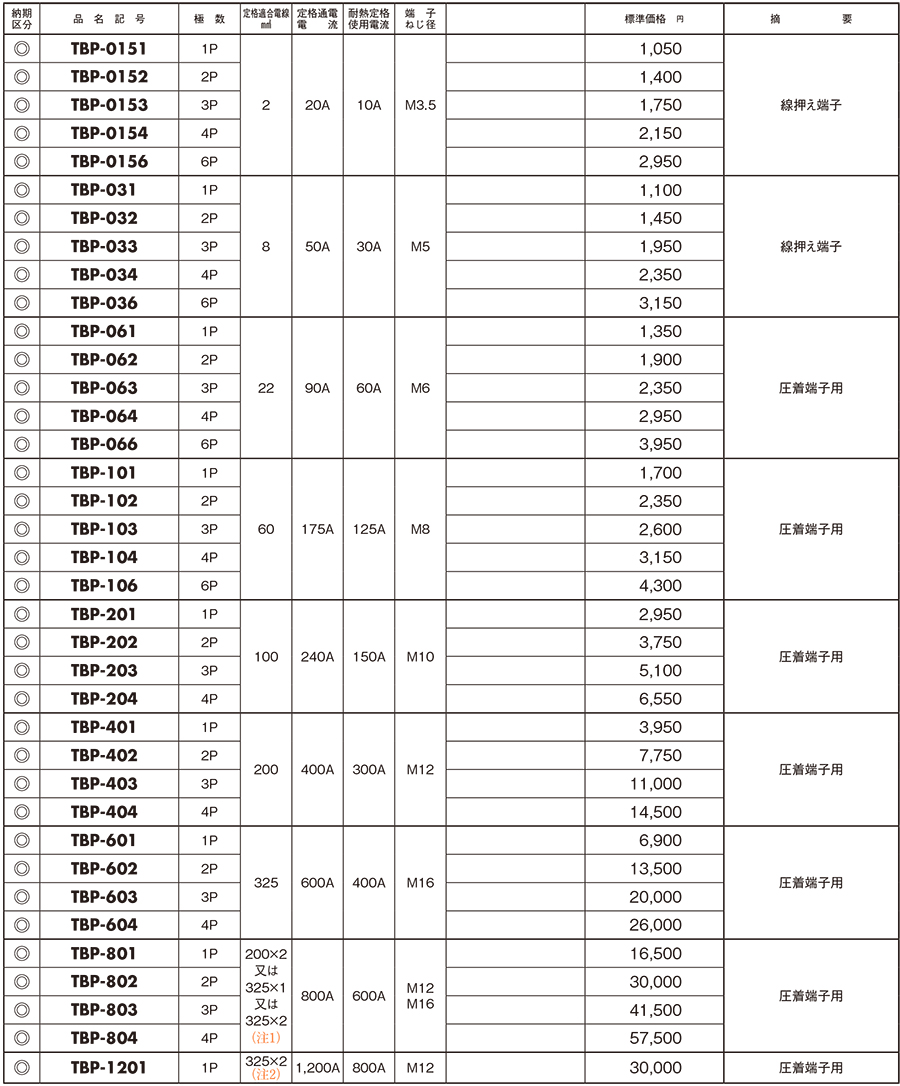 2. TBP固定式電力用端子臺