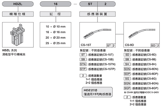 2. 滑軌型平行機械夾(加長行程)HDZL