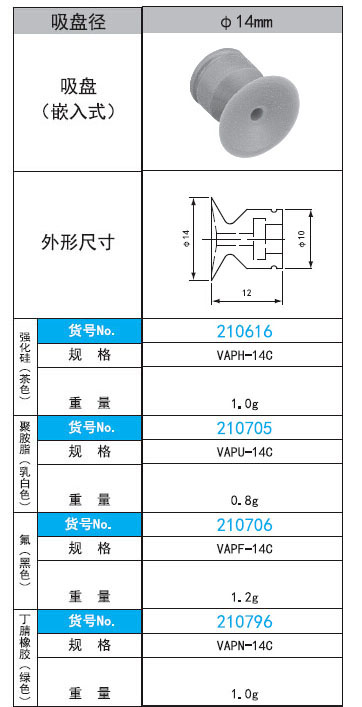 2. VAP-14C系列直徑14mm嵌入式真空吸盤