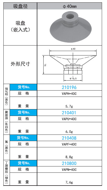 2. VAP-40C直徑40mm嵌入式真空吸盤