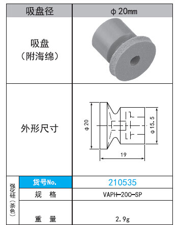 2. VAPH-20C-SP吸盤(pán)(帶海綿)