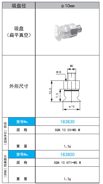 2. SQN 10 -M5 M直徑10mm扁平真空式吸盤