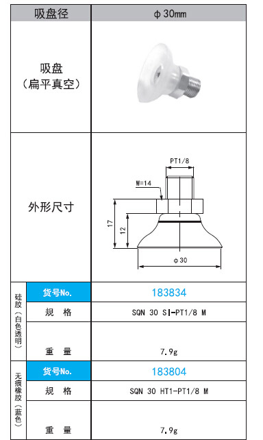 2. SQN 30 SI·HT1-PT1/8 M直徑30mm扁平真空式吸盤