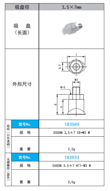 2. SSGON 3.5*7 SI·HT1 -M3 M直徑3.5x7mm長圓形吸盤