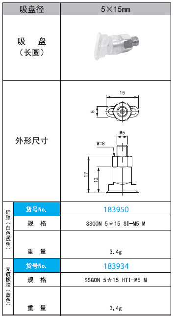 2. SSGON 5*15 SI·HT1 -M5 M直徑5x15mm長圓形吸盤