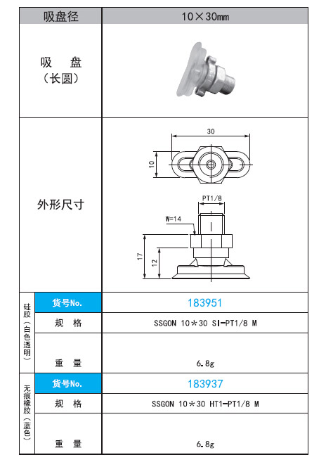 2. SSGON 10*30 SI·HT1-PT1/8 M直徑10x30mm長圓形吸盤