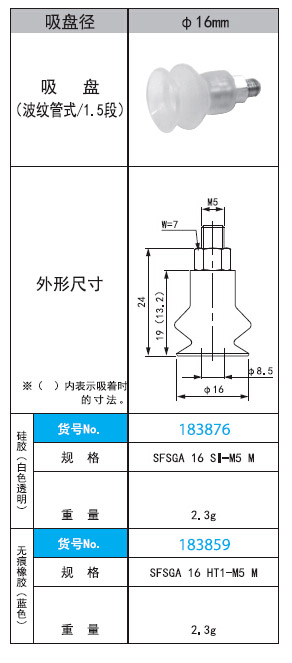 2. SFSGA 16 SI·HT1 -M5 M直徑16mm波紋管式/1.5段吸盤