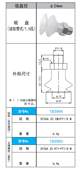 2. SFSGA 25 SI·HT1 -PT1/8 M直徑24mm波紋管式/1.5段吸盤(pán)