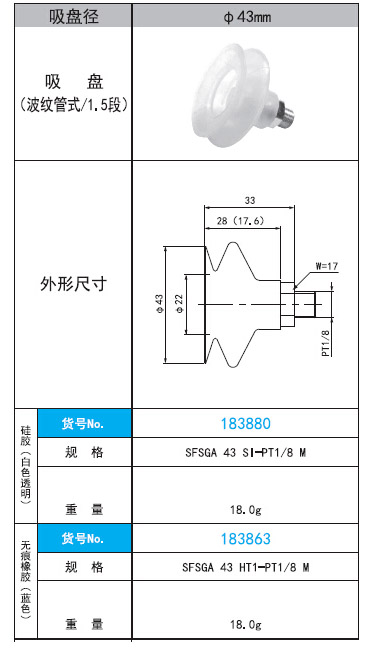 2. SFSGA 43 SI·HT1 -PT1/8 M直徑43mm波紋管式/1.5段吸盤