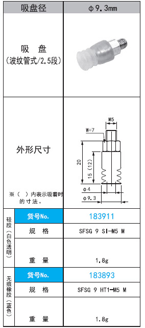 2. SFSG 9 SI·HT1 -M5 M直徑9.3mm波紋管式/2.5段吸盤