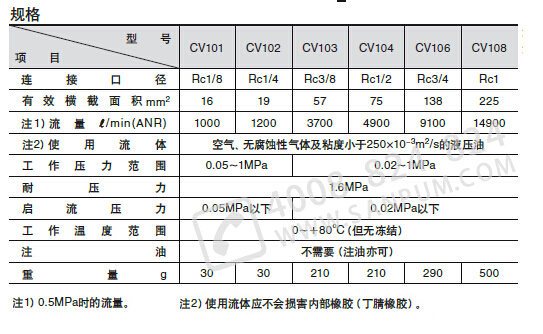 CV1系列 僅允許單向流動(dòng)壓縮空氣、不可反向流動(dòng)的閥