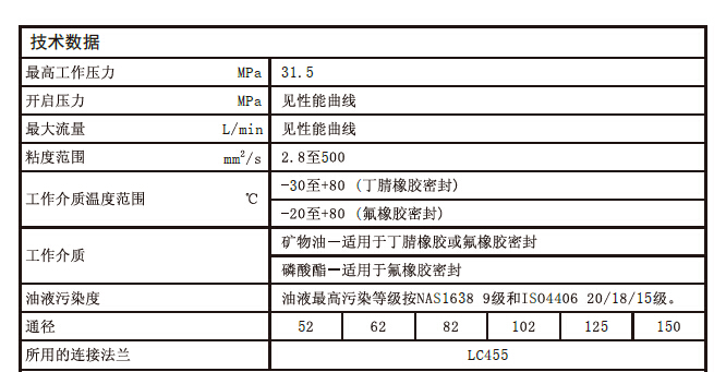 通徑(NG)52至150;壓力至31.5MPa;流量至15000L/min.