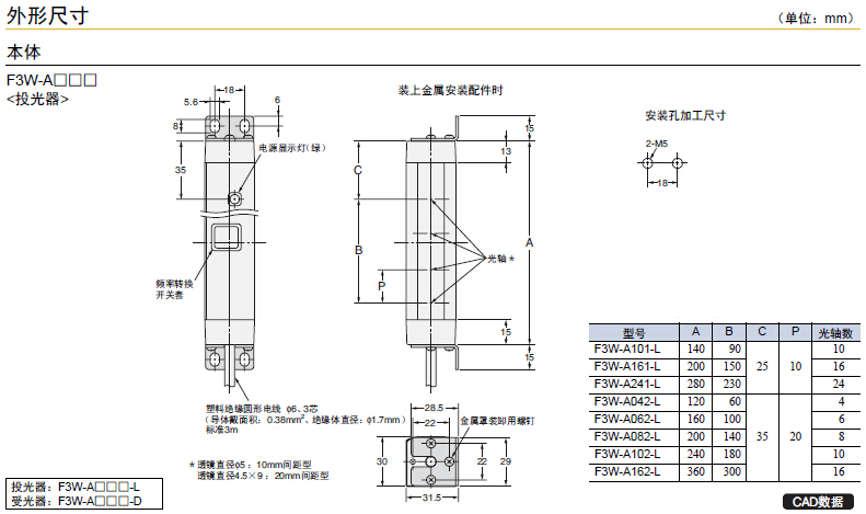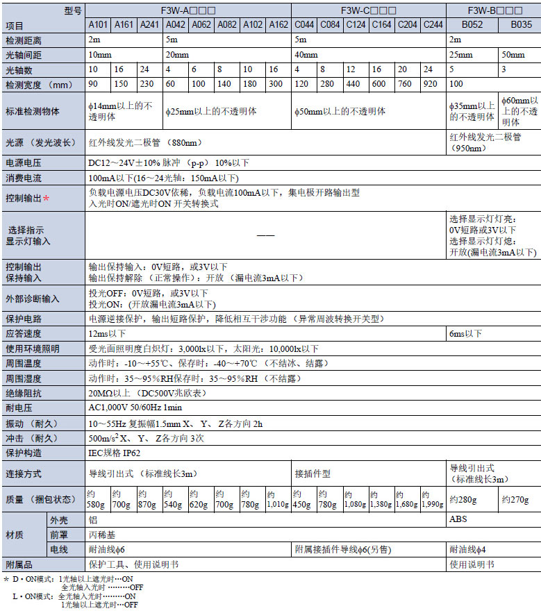 F3W-A/B/C系列工件檢測用區(qū)域傳感器