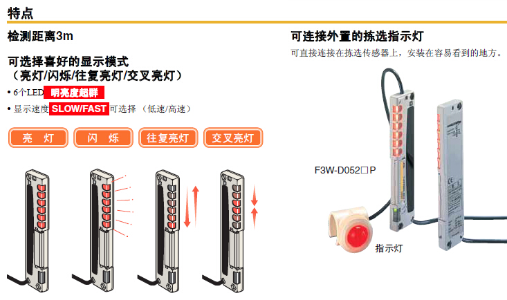 設(shè)置在零件架上,用指示燈指示零件取出順序,是出錯(cuò)防止用的傳感器;