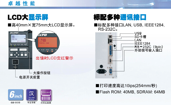 LCD大顯示屏,多種通訊接口,快速打印。